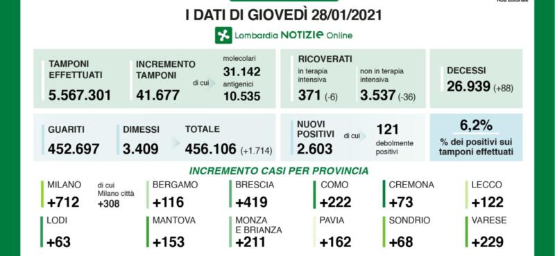 Cronaca 25 Gen 2021 Covid, 30 casi in provincia In regione indice di contagio a 7,9%. I decessi sono 46