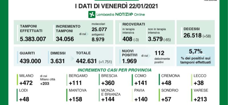 Cronaca 22 Gen 2021 Iss: 'Regione Lombardia chiede rettifica. Sbagliato calcolo del rapporto asintomatici e non'