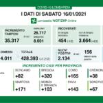 Cronaca 18 Gen 2021 Covid: 22 nuovi contagi in provincia. Al 7,2% l'indice di contagio. In regione 45 morti