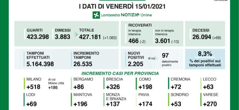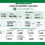 Cronaca 15 Gen 2021 Covid, ancora 72 nuovi casi in provincia. In Regione l’indice di contagio all’8,3%. 68 i morti