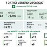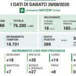 Cronaca 30 Ago 2020 Scende il numero di positivi, ma tamponi in netto calo. L'indice di contagio a 1,82%