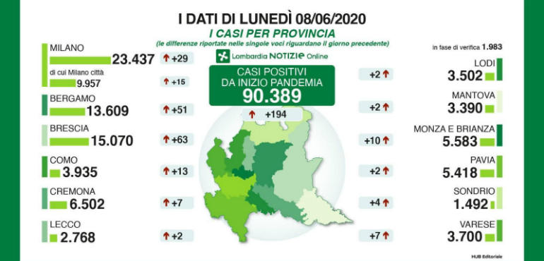 Cronaca 06 Giu 2020 Covid, percentuale positivi in Regione scende all'1%. 7 casi e un decesso in prov. di Cr