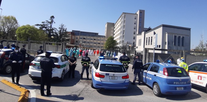 Cronaca 11 Apr 2020 Il saluto e il ringraziamento delle Forze dell'Ordine agli operatori sanitari di Crema