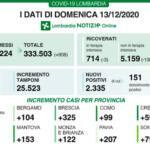 Cronaca 08 Dic 2020 Covid, in provincia 45 nuovi casi, 1.656 in Lombardia. Pochi tamponi, aumento dei decessi
