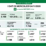 Cronaca 10 Nov 2020 Covid: in Italia 580 morti in 24 ore. In regione 10.955 nuovi contagi, 133 in provincia